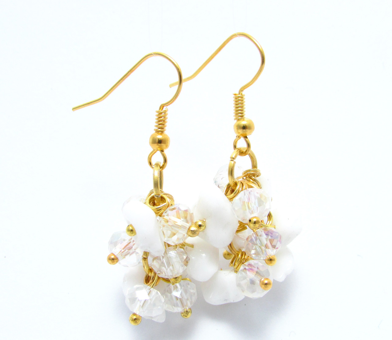 Серьги підвіски з натурального каменю Агат білий і кришталикаль