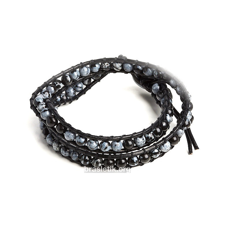 Браслет у стилі Чан Лу Chan Luu з натурального каменю Обсидіан сніжний. Розмір каменів 6 мм. Браслет одягається у 2 оберти.